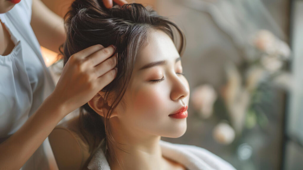 – Japanese Botanical Head Spa: Our signature 90-minute treatment using warm water therapy, botanical oils, and traditional massage techniques